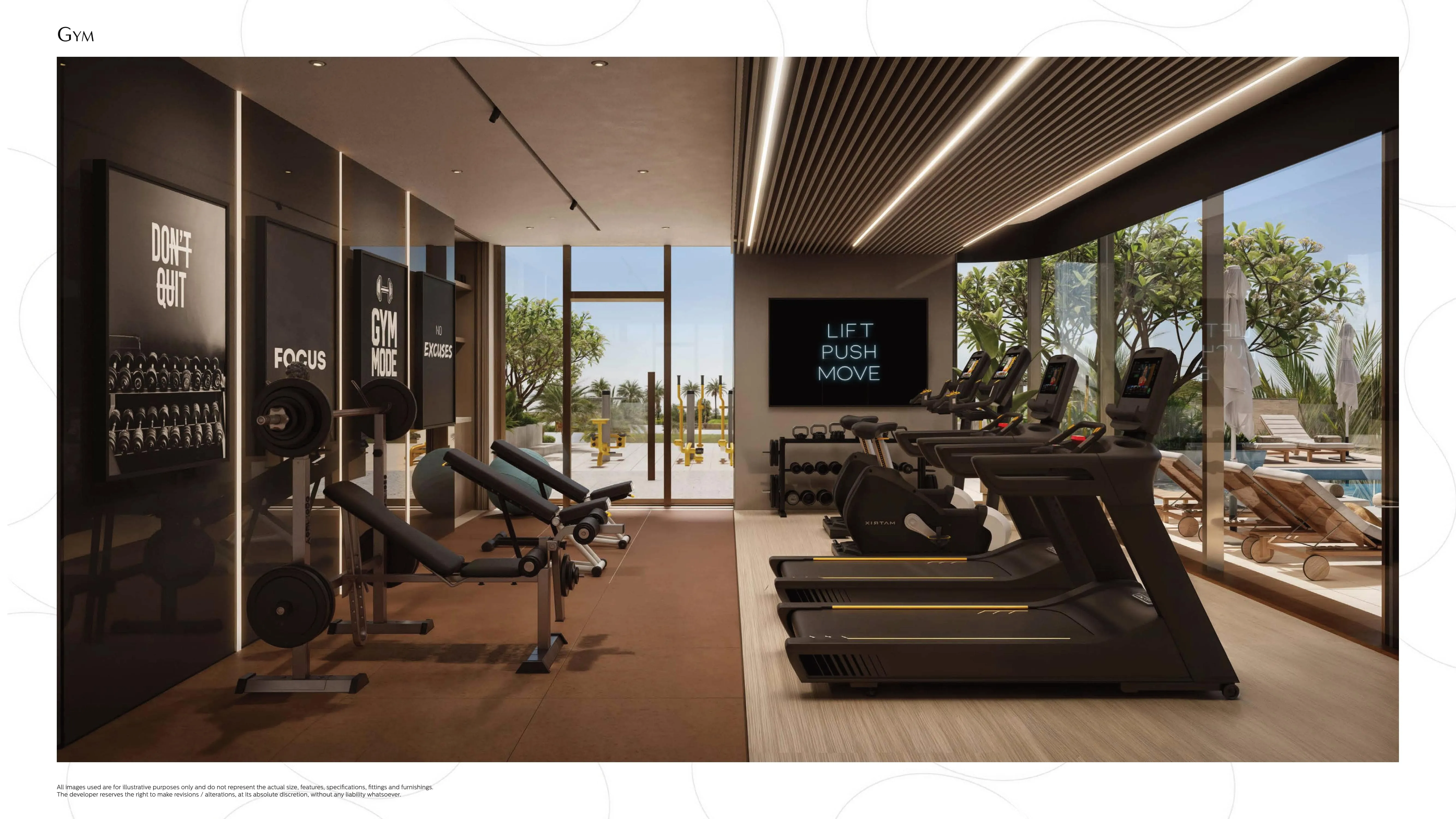 A modern, fully equipped fitness center designed to support wellness, strength training, and an active coastal lifestyle.