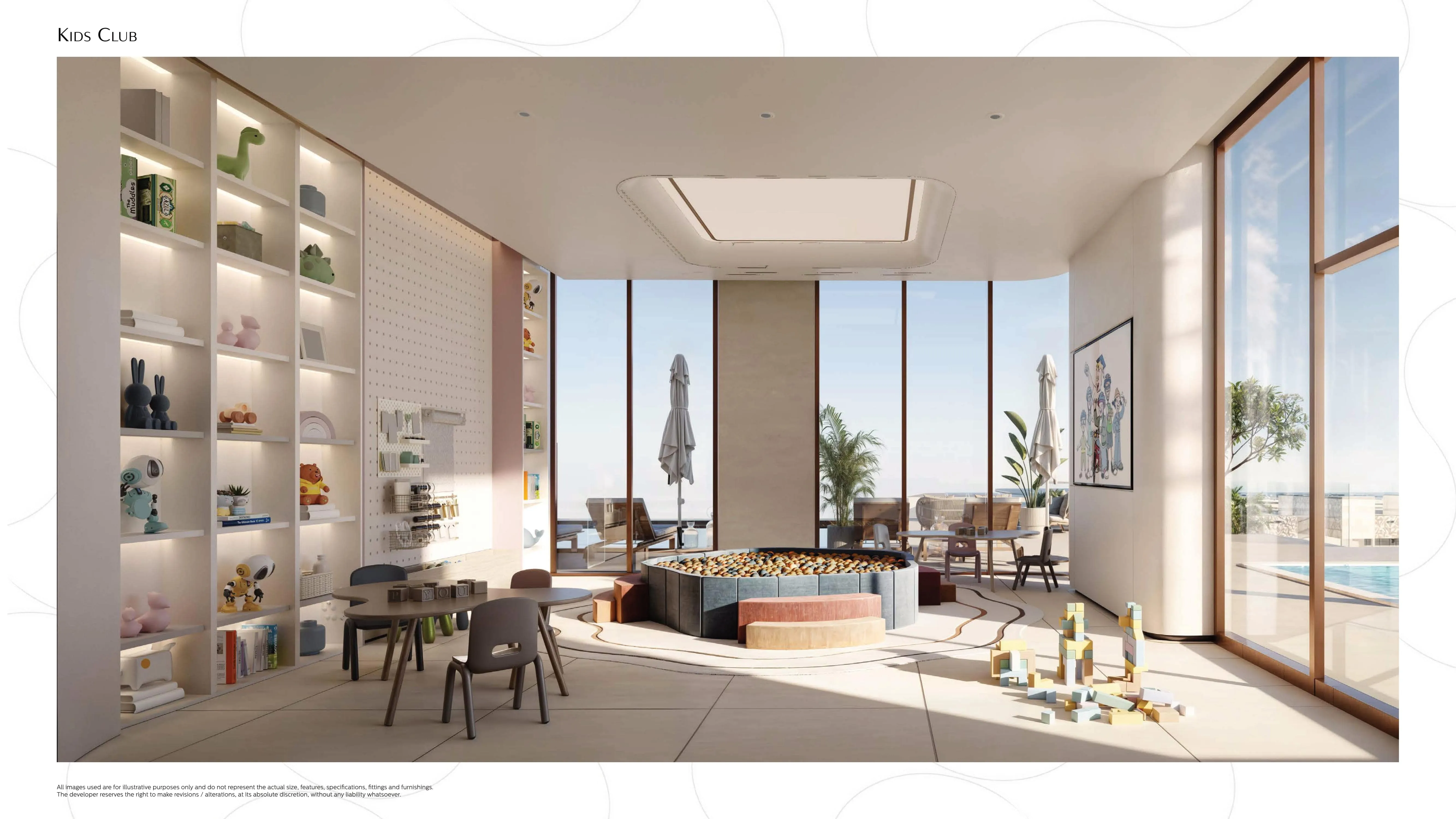 gym, open-air fitness area, swimming pool, kids pool, kids club, yoga deck, outdoor cinema, and rooftop